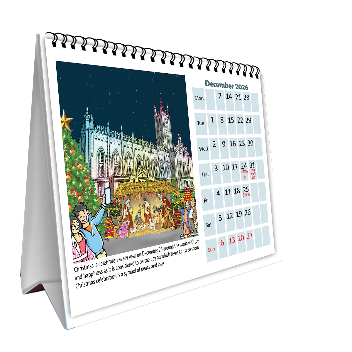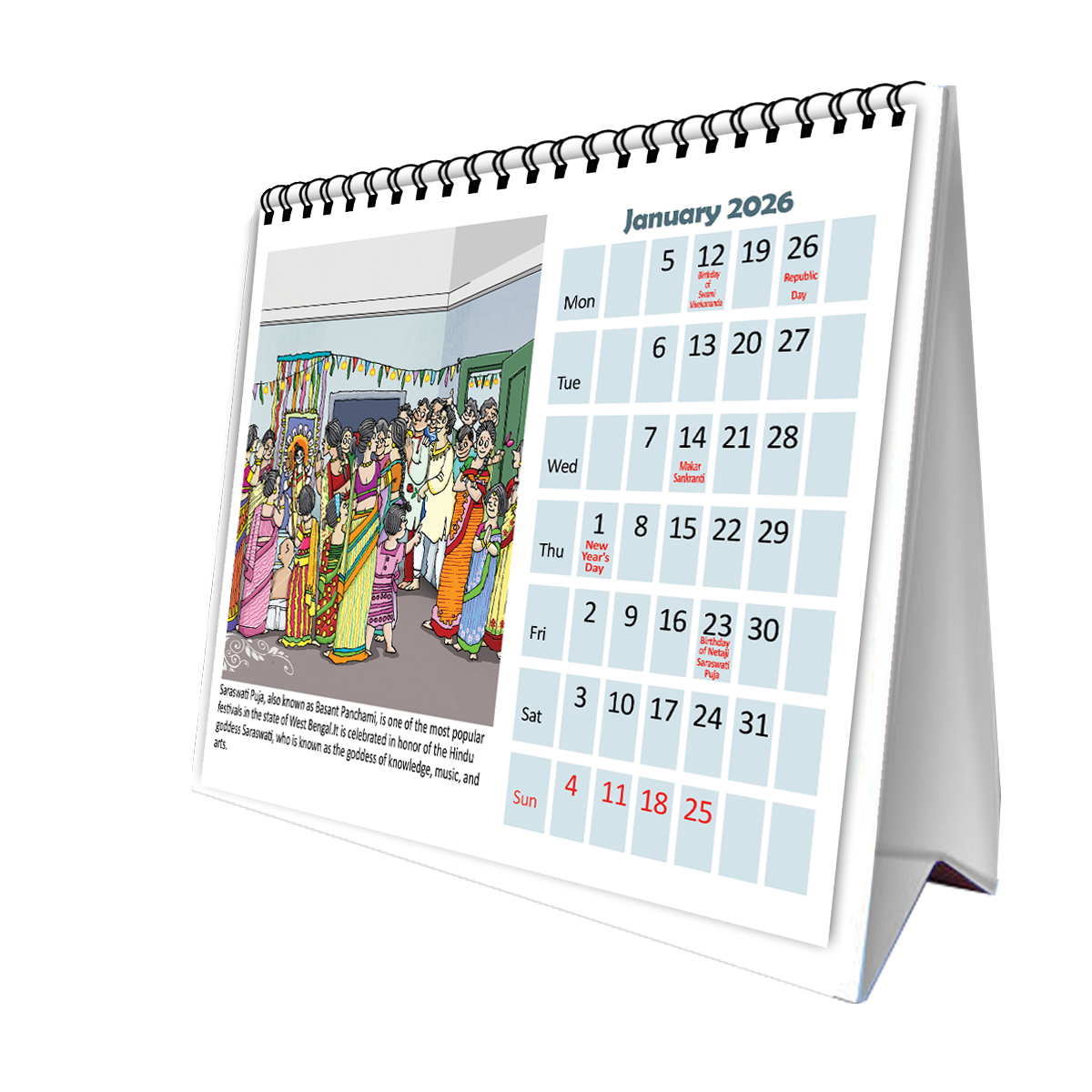 • Beautiful Hand Illustrations: Each month showcases exquisite, hand-drawn artwork celebrating Kolkata’s iconic landmarks, festivals, and everyday charm.