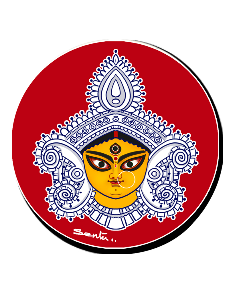 The face of Goddess Durga symbolizes a powerful, paradoxical blend of fierce, protective warrior energy and calm, divine maternal compassion. It represents the triumph of good over evil (Mahishasura-mardini), with her serene expression highlighting that strength can coexist with peace. The radiant face, often depicted with three eyes, signifies omniscience, wisdom, and the destruction of ignorance.