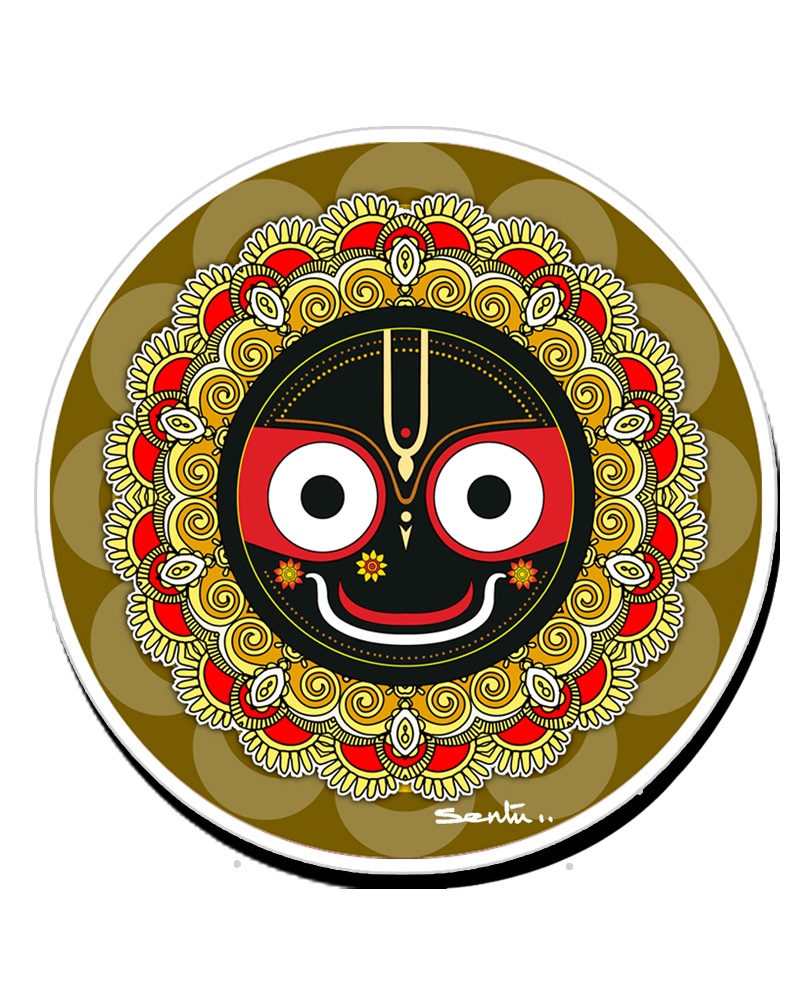 Lord Jagannath’s unique, minimalist face—featuring a square, flat head, no distinct neck or ears, and large, round eyes without eyelids—symbolizes his role as the “”Chakadola” or all-seeing Lord of the Universe”. His large eyes represent the Sun and Moon, signifying divine, non-judgmental, and constant observation over all creation.